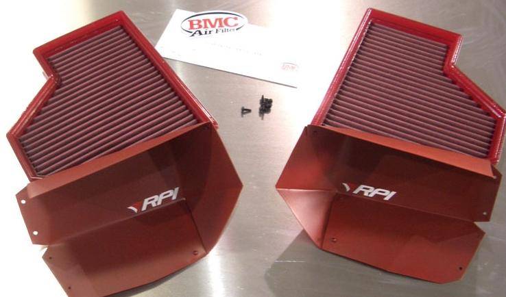 RPi's Ram Air Scoops converts your factory intake system into a ram air type. Other aftermarket induction kits mostly suck in hot air causing a loss of performance. The use of heatshields are not very affective as heat shields mainly work to block radiant heat. Utilizing the stock intake boxes, expect an 8-11whp gain with 70mph airflow. RPi Ram Air Kits come with a high performance BMC air filter.