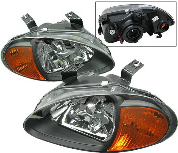 Honda Del Sol 4 Car Option Headlights - Black - 1PC - LH-HD93B-6 Fits: