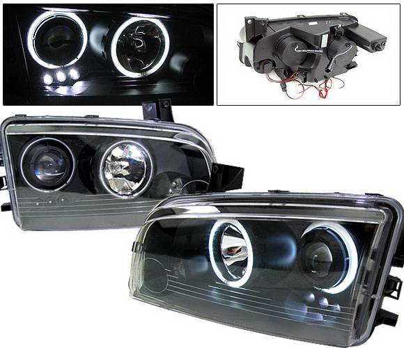 Dodge Charger 4 Car Option Halo Projector Headlights - Black CCFL - LP-DCHAR05BB-KS Fits:
