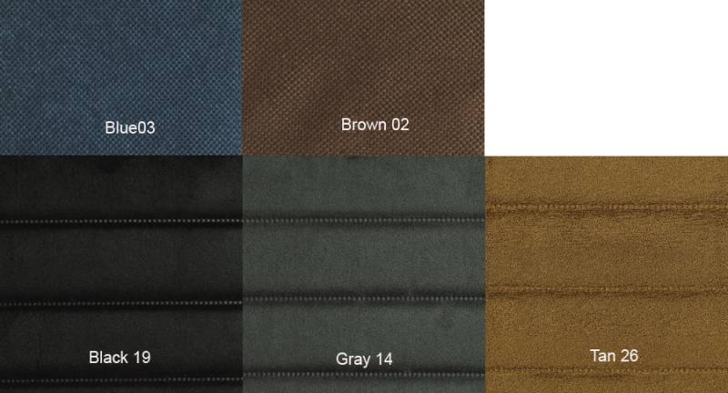 [19] Black, [03] Blue, [02] Brown, [14] Gray, [26] Tan