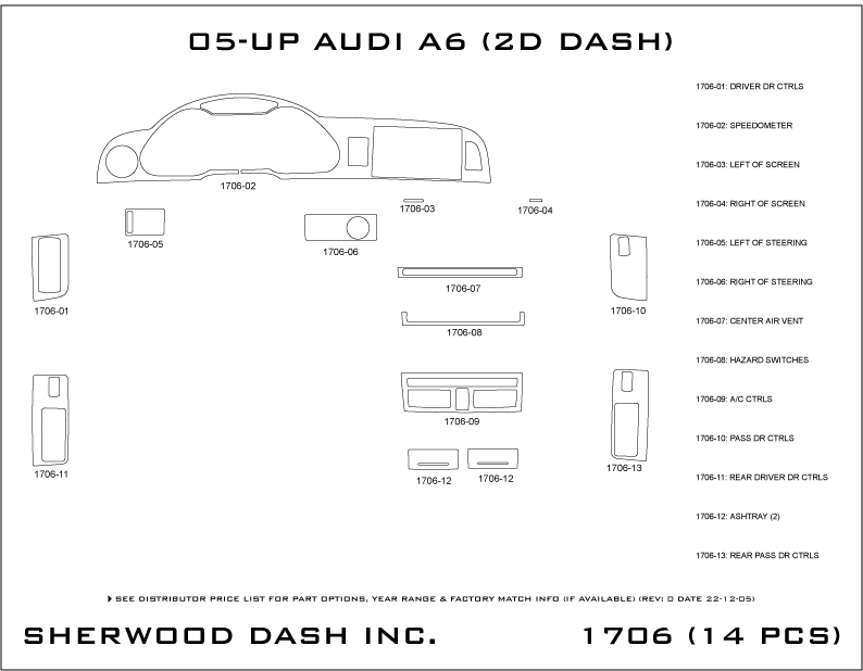 Audi A6 Sherwood 2D Flat Dash Kit Fits: