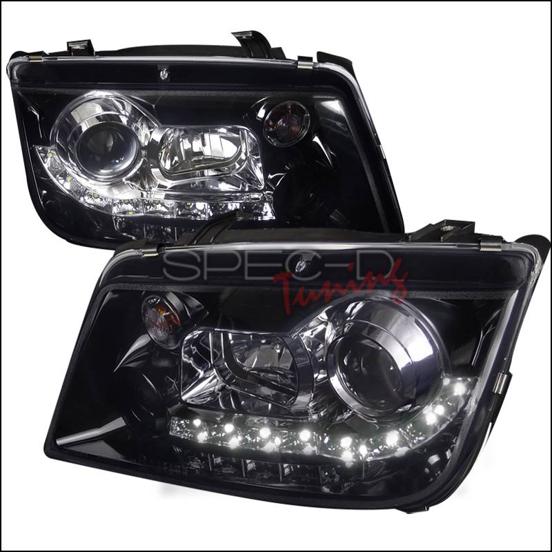 Volkswagen Jetta Spec-D R8 Style Smoked Lens Gloss - Black Housing Projector Headlights - LHP-JET99G-8-TM