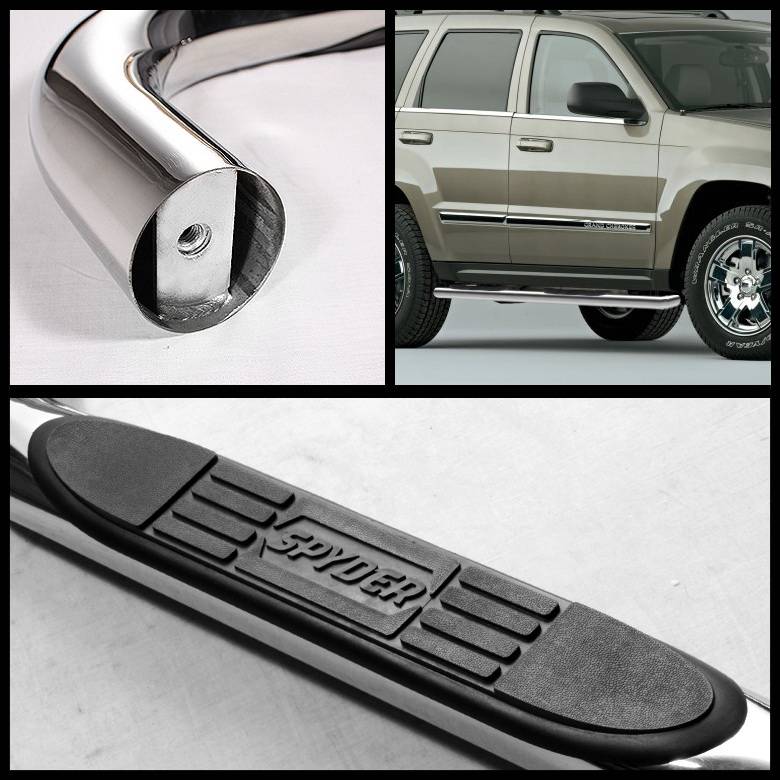 - Jeep Grand Cherokee Spyder 3 Inch Round Side Step Bar - Polished T-304 Stainless Steel - SSB-JGC-A07S0902H