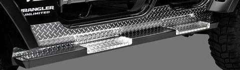 Easy to install, Rock Barz are constructed of heavy-duty 2x4" rectangular steel, and designed to protect the entire length of the rocker panel. Polyurethane end caps keep the tube free of debris. Black powder-coated for durability, each bar has a provision for an optional diamond plate entry step. Note: The Rock Barz application for the JK Unlimited has front and rear entry steps, for a total of four.
