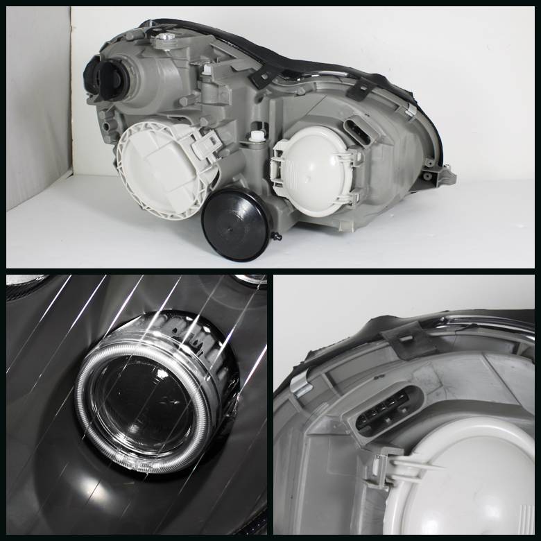 Mercedes-Benz C Class Spyder Halo Projector Headlights - Black - PRO-CL-MW20301-HL-BK