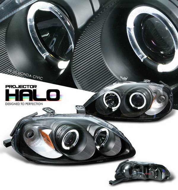 Honda Civic Option Racing Projector Headlights - Black with Halo - 11-20324