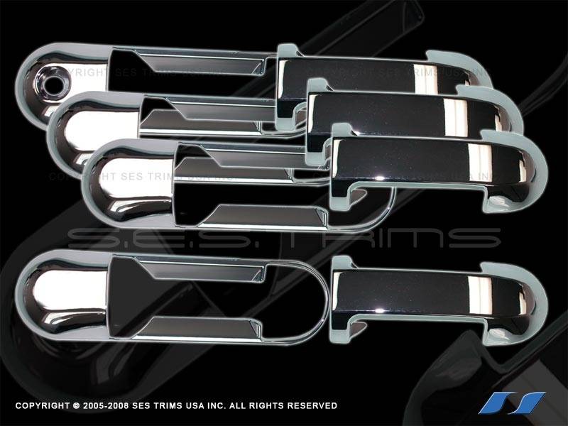 Personalize and customize your vehicle with the classic look of distinction that sets you apart from the crowd. Select a custom SES chrome door handle for the highest quality product on the market. We offer only the best there is. Our door handles are triple chrome plated to a gleaming solid mirror finish. Please be assured that our SES Trims custom door handle will stand up to the rigors of winter driving. It won't yellow with age, cut your hands from sharp edges, or hurt your wallet either. Best of all it installs easily over your existing door handle with no need to drill, cut or remove any factory grill components.