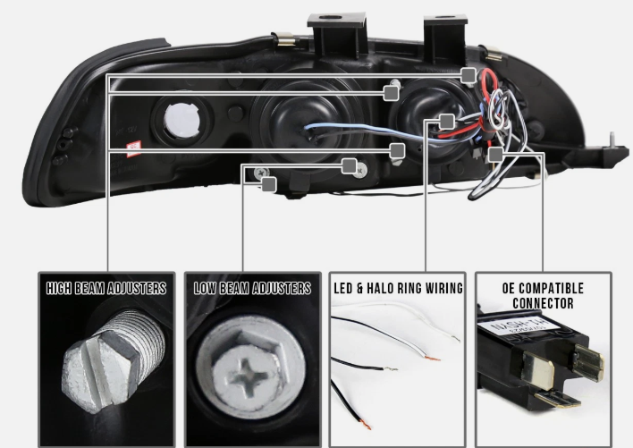 Honda Civic 2DR 4 Car Option LED Dual Halo Projector Headlights - Black - LP-HC922BB-5 Fits: