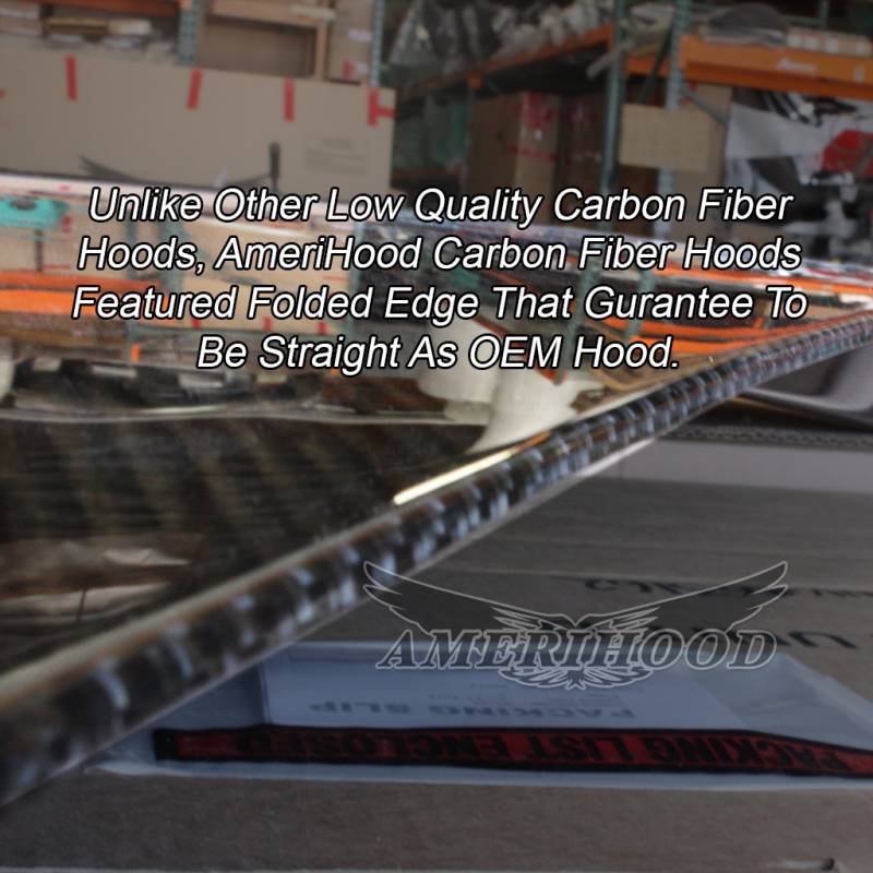 AmeriHood utilizes factory hinges and striker for easier installation, Grade "A" Carbon Fiber is used with automotive grade resins to ensure a show finish.