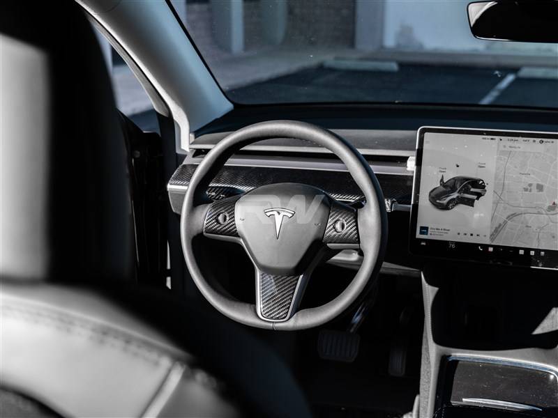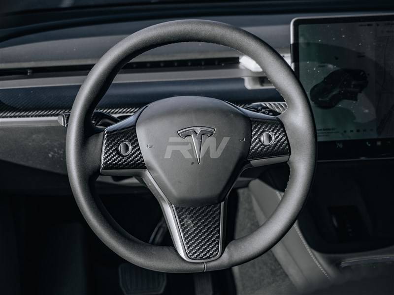 - Tesla Model 3 / Y Carbon Fiber Steering Wheel Trim tesla018